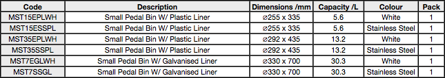 Small Pedal Bins - Technical Information